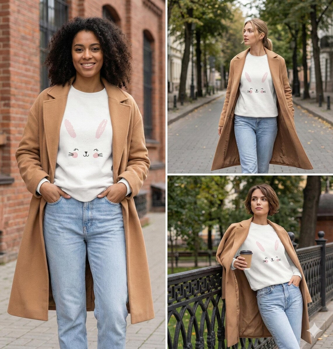 Soft, warm, and a little playful — this Bunny Face Crewneck Sweatshirt brings a subtle, hand-drawn bunny face to everyday wear. It sits with classic, clean lines and a cozy midweight feel, so it moves from quiet mornings with a cup of tea to casual afternoons out without fuss. The embroidered or printed bunny detail adds a gentle, whimsical touch that often becomes the small smile people notice first. Made with a balanced cotton–poly blend and thoughtful construction, it feels lived-in from the first wear and holds up wash after wash. For people who love gentle, approachable style and a hint of charm, this sweatshirt settles into wardrobes as a comforting, long-wearing favorite. This Sweatshirt for girls can be a perfect gift for any occasion.
