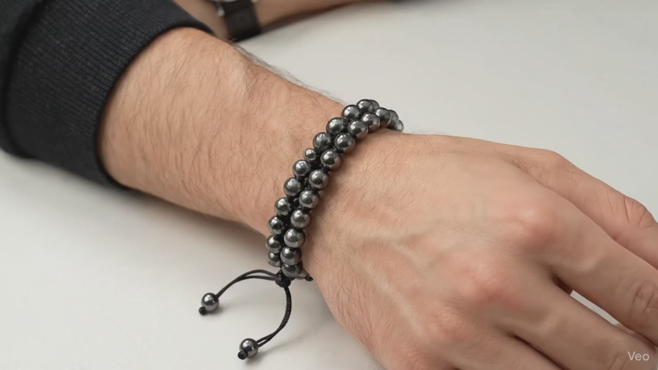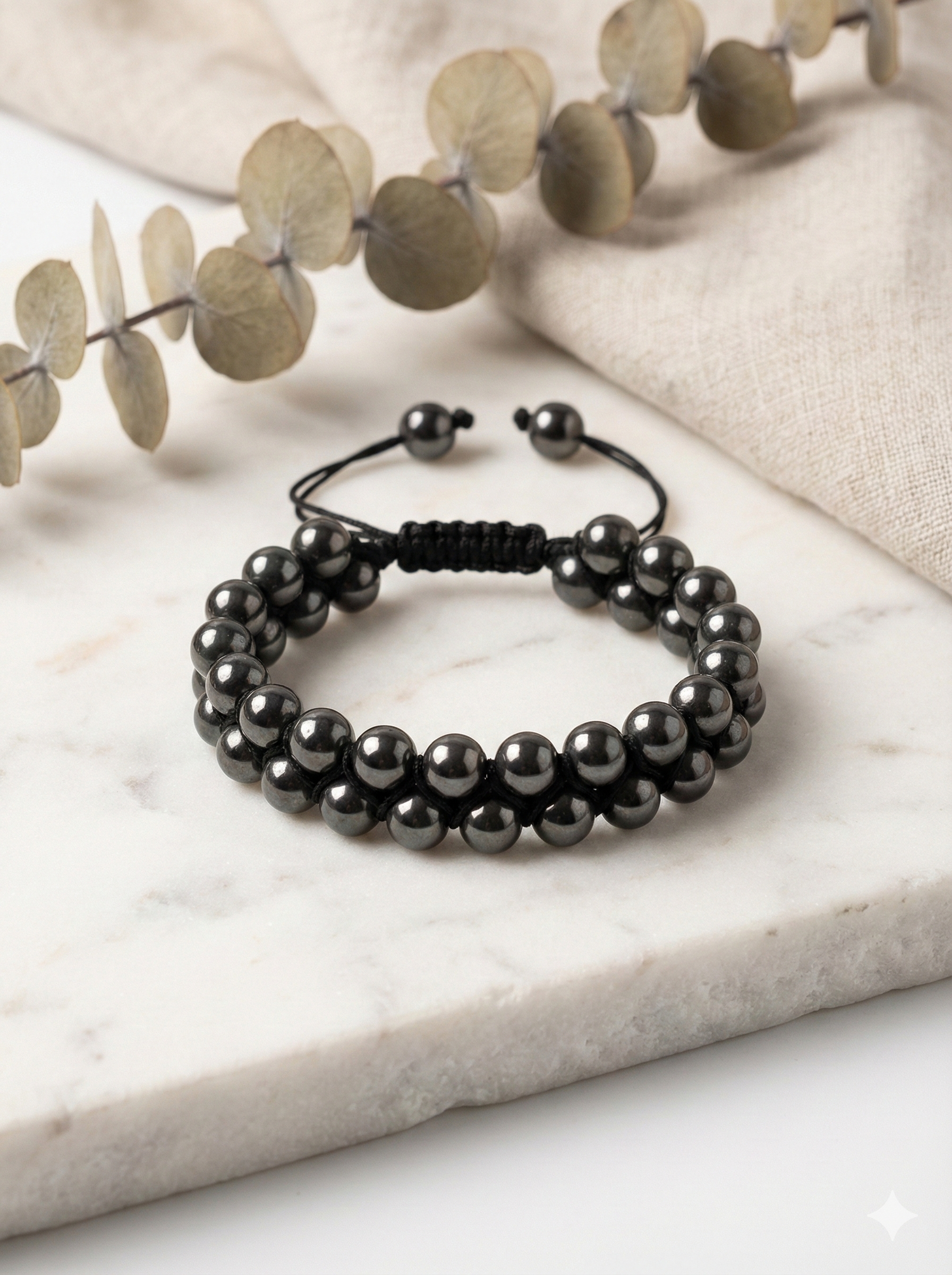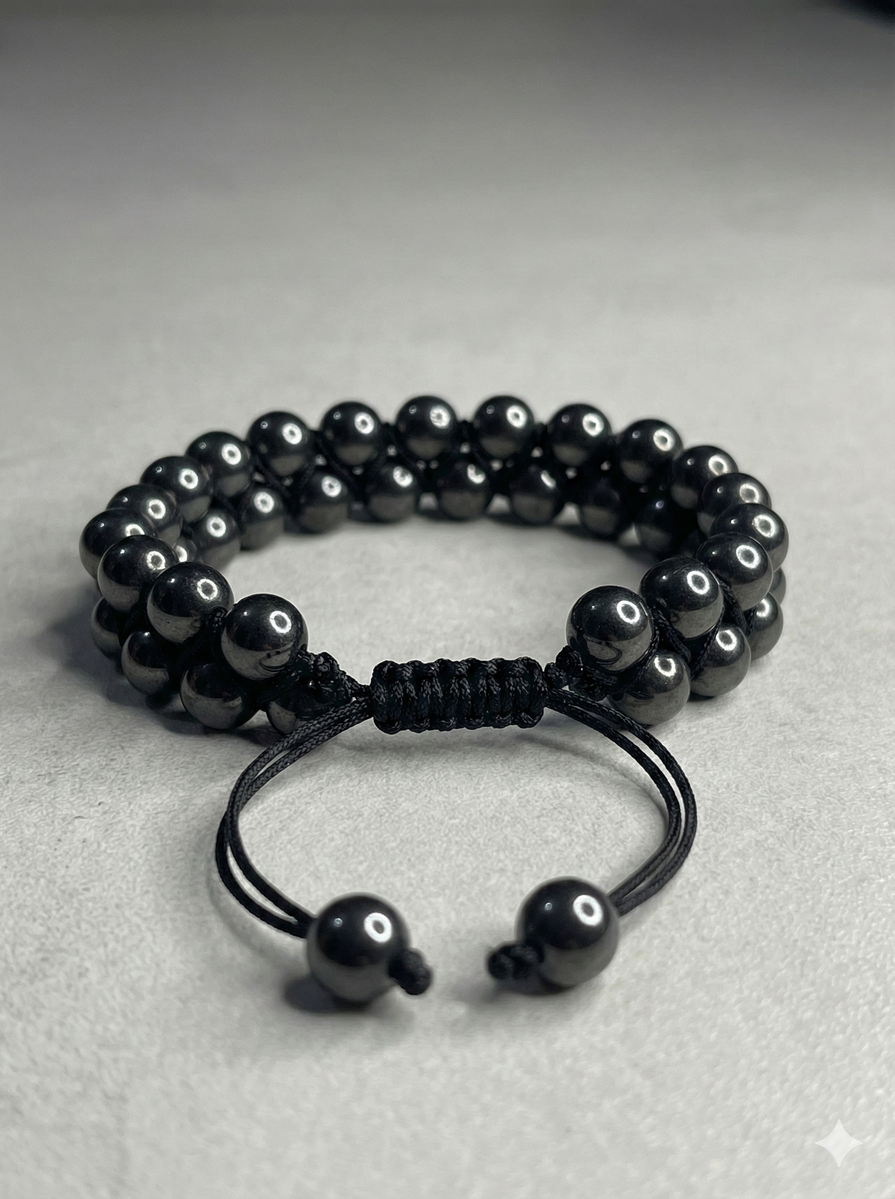 Men Double-Row Magnetic Hematite Healing Bracelet - Adjustable Fit